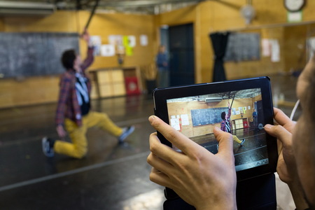 松本君がタブレットからフェイスブックにアップ中です。